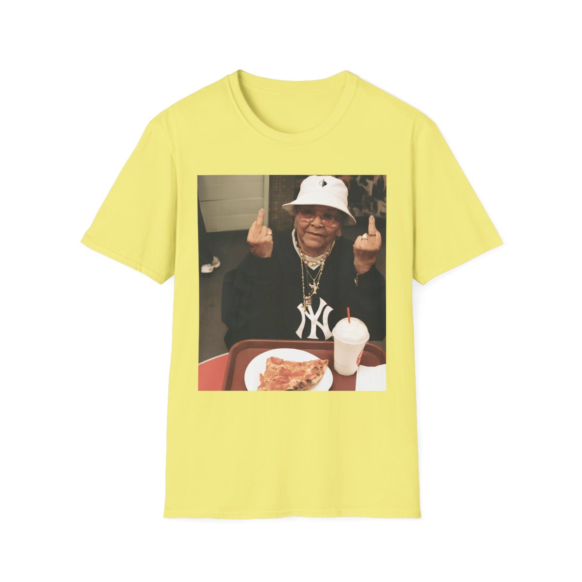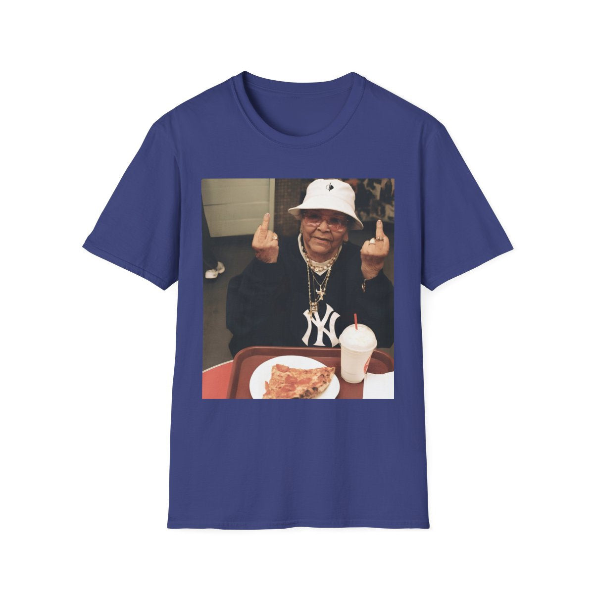 This tee captures the savage spirit of a grandma who’s seen it all — and is still running the streets like a boss. From her iconic bucket hat to that bold NY hoodie, she’s redefining what it means to age with style, humor, and pure attitude.