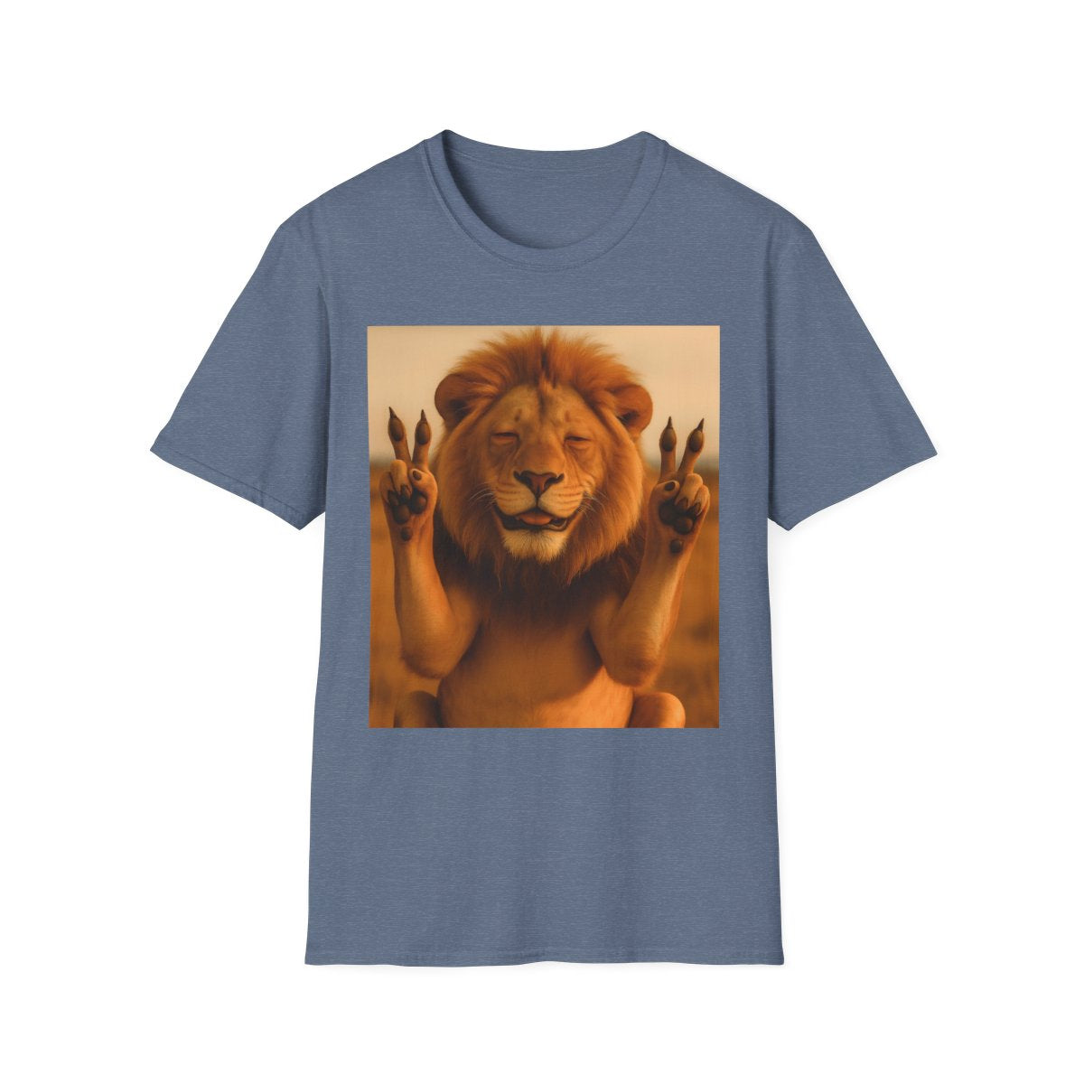 A lion with both paws up, throwing peace like a king who’s seen everything — and now just vibes.